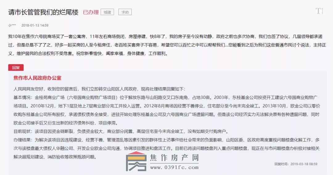 楊先生多渠道找不到開發(fā)商,也多次向焦作市有關(guān)部門反映情況,但是問題一直沒有得到解決。